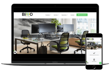 BIWO Conseguir mas visibilidad y clientes a nivel local. empresa especialista en mobiliario y equipamiento de oficinas con la experiencia de más de 10 años atendiendo las necesidades de equipamiento y mobiliario de oficina en Cantabria. Durante estos años ha aportado soluciones a más de 2.000 clientes, especialmente PYMES, profesionales e instituciones.